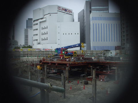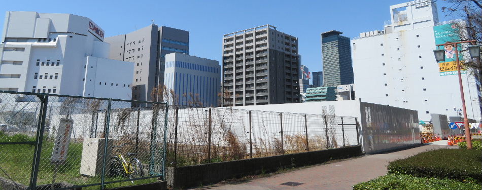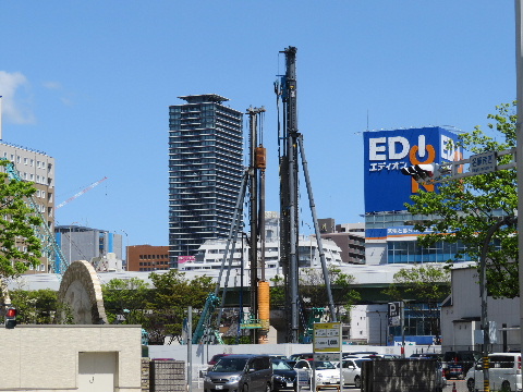 2020年04月19日。南西から見る。基礎工事始まる。奥のビルは御 園座。 |