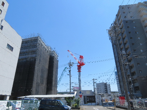 | 2021年05月23日。基礎工事終わりクレーン立つ。 |