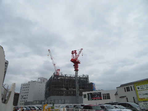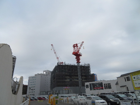 2023年01月08日。向こう側のクレーンも片付け中で横から ちらっと先っちょが覗いている。 |