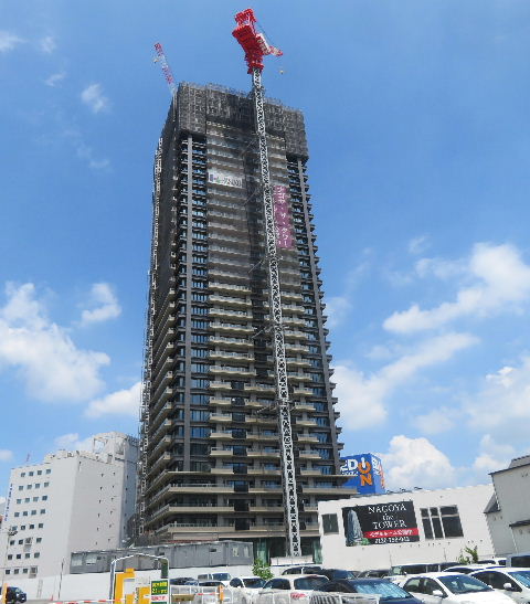 2022年05月14日。垂れ幕かかって26階組み中。 |