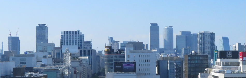 | 2022年10月02日。栄の芸文センターから見る。駅前の高いビル並びの1番南(左)端。 |