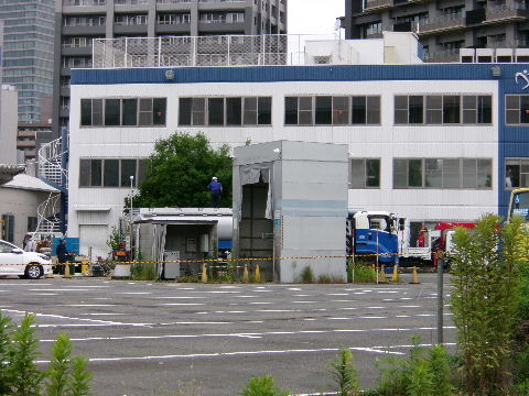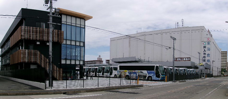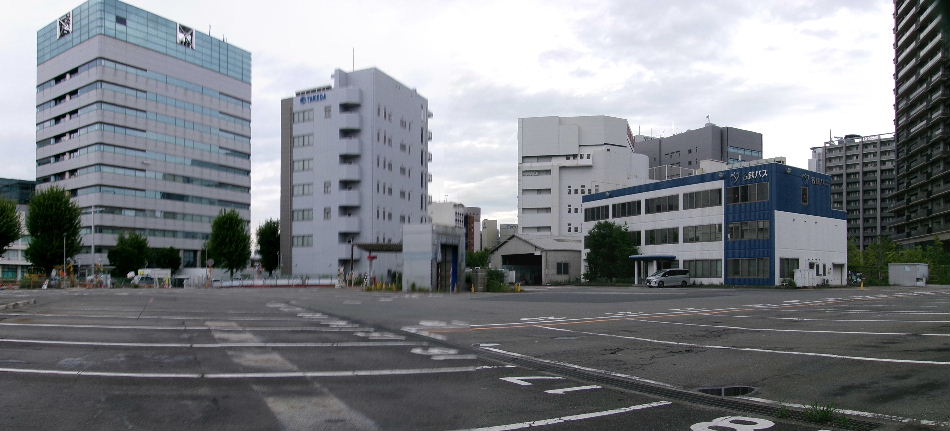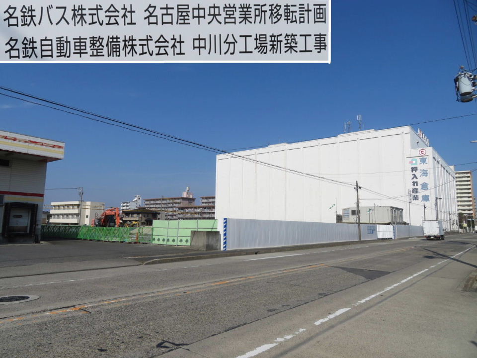 2023年11月04日。右上画像のビル隣のバス車庫が ここへ移転するようだ。移転して空いたところにはまた 同じようなビルが建つか。中川運河の西側道路の篠原橋と 野立橋の中間くらい。今の車庫より回送バスの走行距離が 少し長くなる。 |
