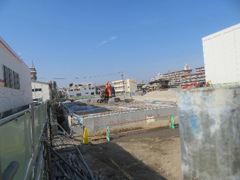 2023年01月15日。裏(北)側が少し見えるようになった。 地下駐車場の出入口か。 |