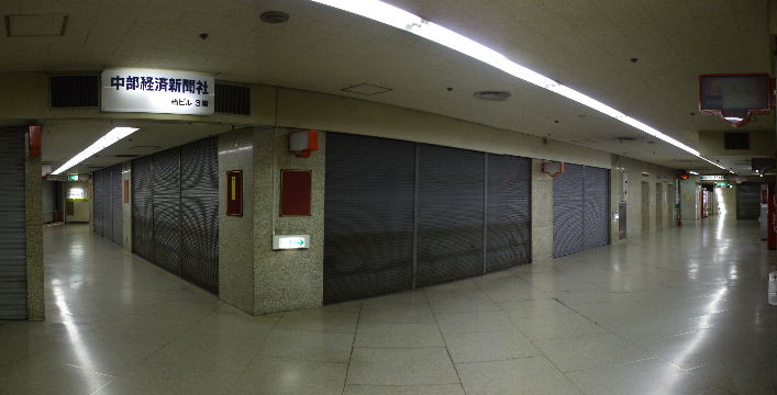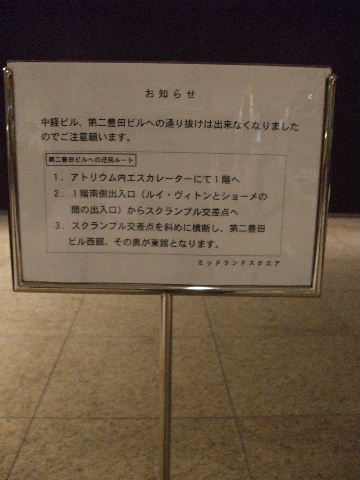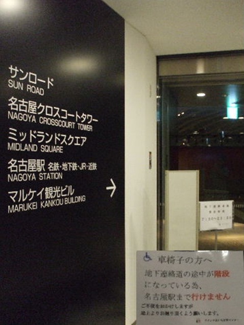 | ミッド地下からの出入口にも中経、第二豊 田ビルへ出られない旨の表示。 |