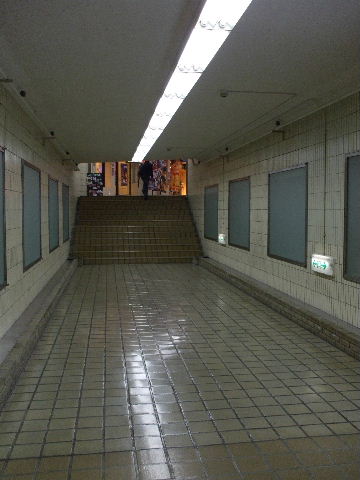 通路も改装され、右画像の元の様子とは 大分と変わっているが階段をあがった所 にあるパチンコ店の煙草と鉄の臭いが混 じった空気はそのまま。 |