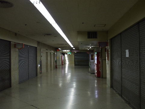 | 今月末に地下が閉鎖されいよいよ解体。 | 解体工事始まる。 | ミッド地下からマルケイ観光ビルの下を通 ってつながっていた地下通路も閉鎖。 |