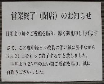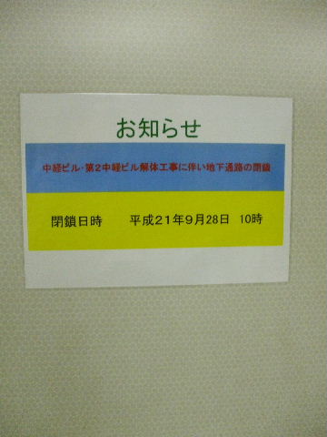 | 中経ビル地下から第二中経ビル地下への入口。 | うち一軒の閉店案内。 |