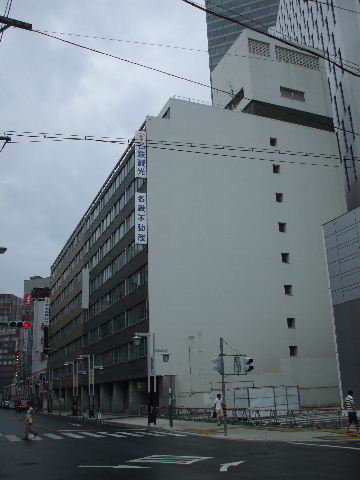 | 西から見る。手前が中経ビル、奥が第二中経ビルで窓の高さもピッタ リあっていて完全に一体化しているが壁の色だけ違っている。左奥に 産労センターのビルが見える。 |