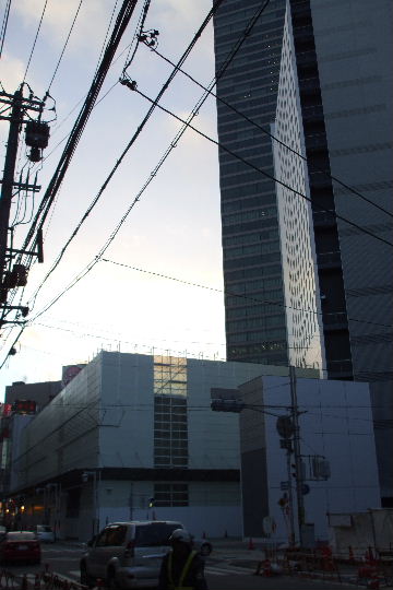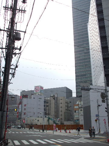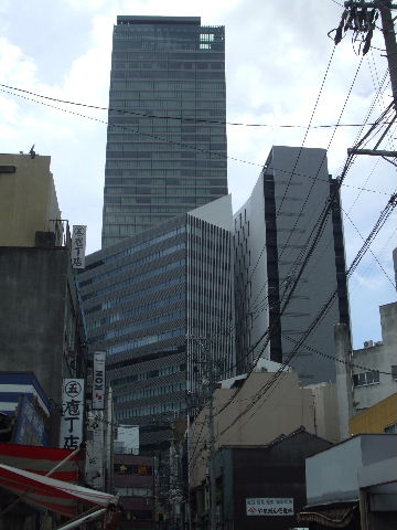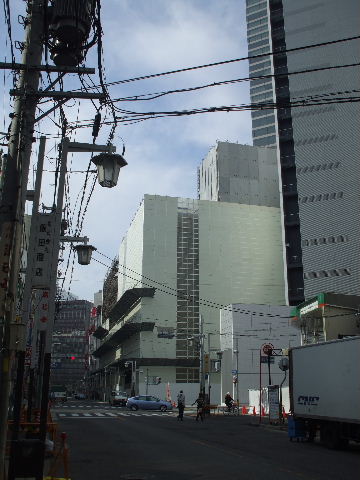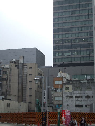 柳橋市場から見る。産労とぴったりくっつ いた向こうにミッド。 |