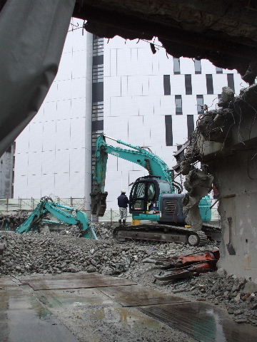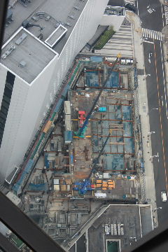 | 工事始まる。 | ミッド展望台から見る。左は産労ビル。 | 掘り下げて基礎工事中。 |
