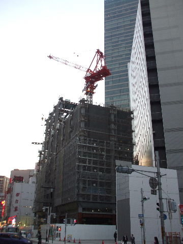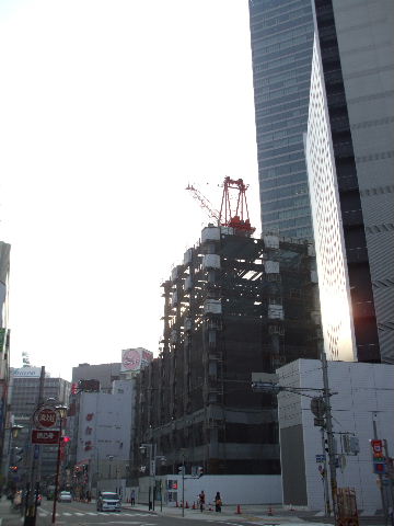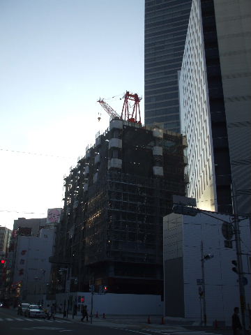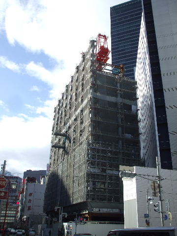 | 屋上の小さいクレーンが無くなった。1、2 階にも硝子が嵌められ始めている。 |