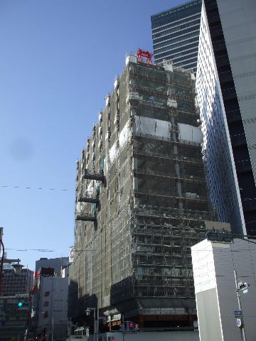 | ビル全体がシートに覆われた。 | 大分と低くなってきた。 | あと残り3階くらい。 |