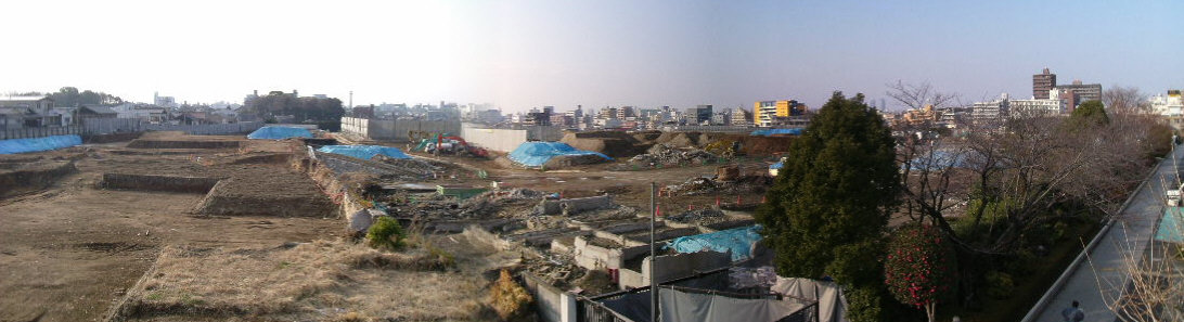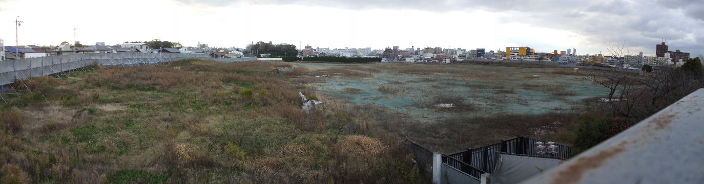 | 2006年1月2日。新瑞橋近くの南区にあった住友電工工場の跡地にダイヤモンドシティとマンションー27階建てと9階建ての二棟ーが建設される。建設工事は2006年3月から始まるということで今はまだ整地作業をしているような様子。東側を通っている新郊通りの歩道橋上から見る |