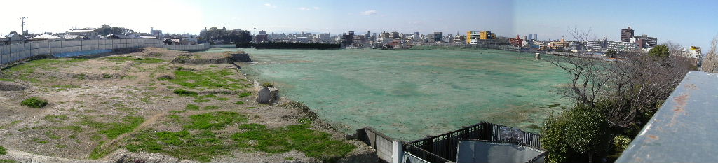 | 2007年3月17日。上の画像から既に一年以上経ったが未だこの状態。周囲の道路には「建設反対」の幟や貼紙が沢山。 |