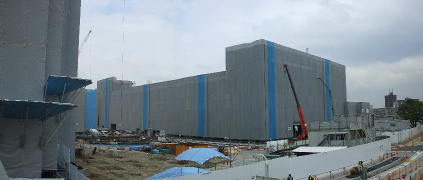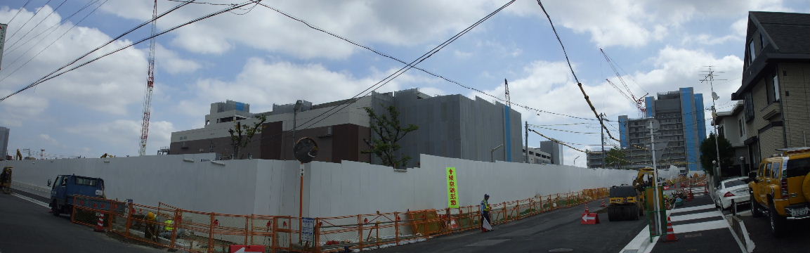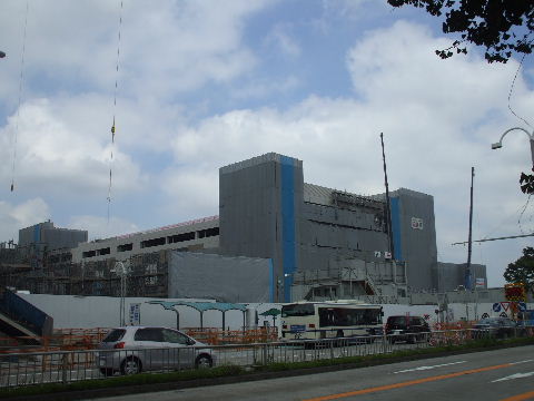 | 2009年5月30日。裏(西)側は駐車場棟を建設中でまだ鉄骨だけ。 |