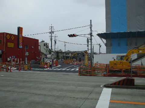 | 2009年8月8日。シートが外されて外観が見え始めている。 | 2009年10月18日。店前の環状一号線では中央分離帯の 工事。 |