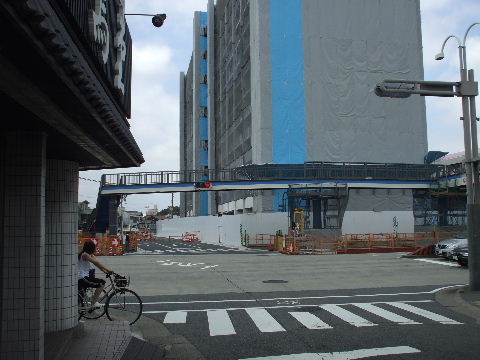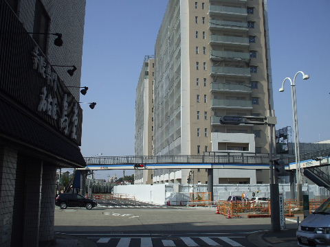 2009年10月18日。歩道橋は増設した所も使用できる ようになっている。マンションも外観は出来上がっている。 |
