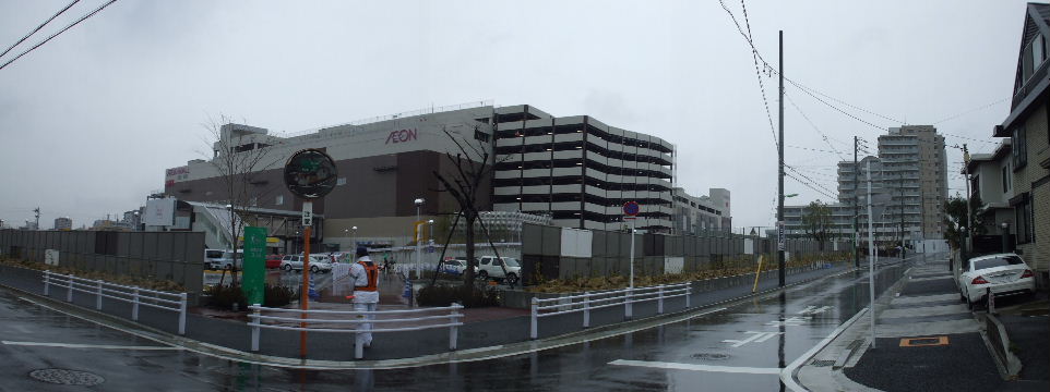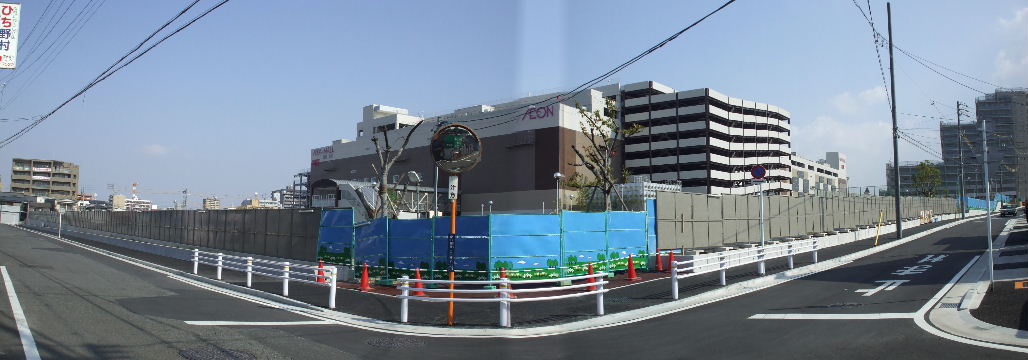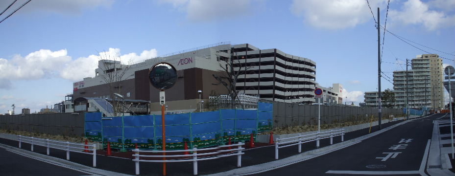 | 2010年1月10日。建物周りの整備が進む。イオンとマンションの間に、奥にある駐車場へ出入りする道路も出来た。 |