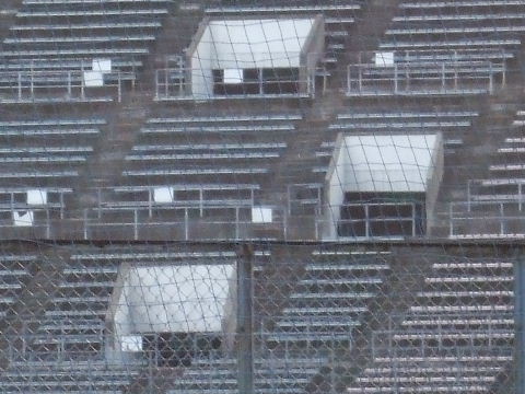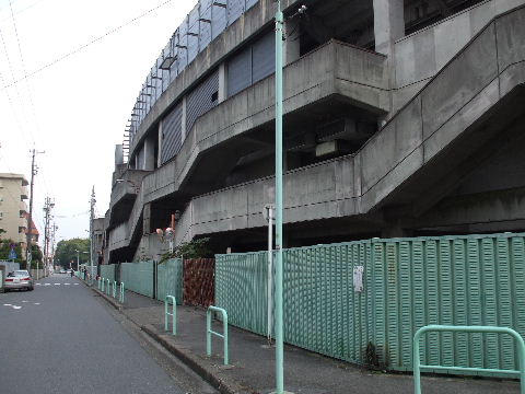 | 2010年1月16日。高いスタンドや塀が無くなったので 低いスタンド越しに向う側の民家やマンションが見える。 |