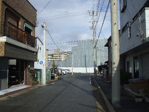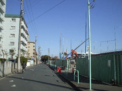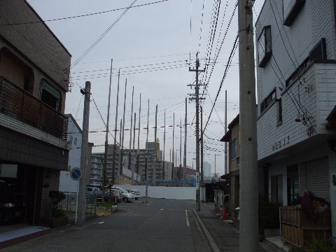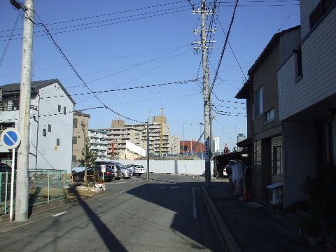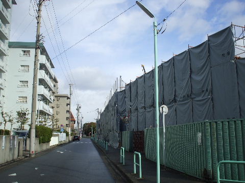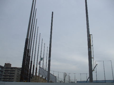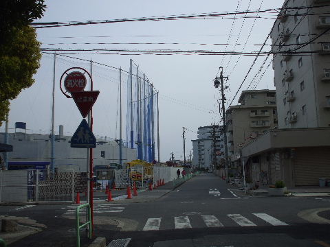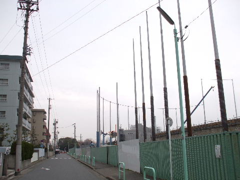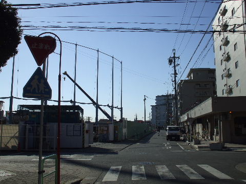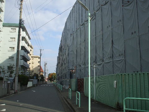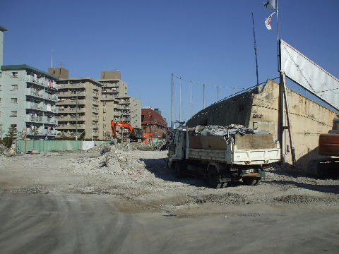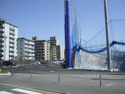 | 2009年12月19日。スタンドが撤去されシートが低く なった。向かいのマンションとの谷間でビル風が強い 道路だったがこれで風の流れが変わるか。 |