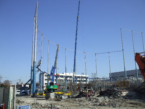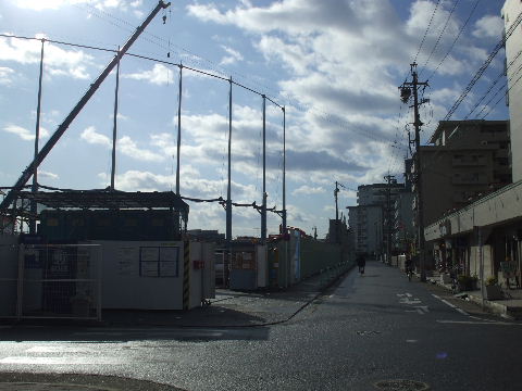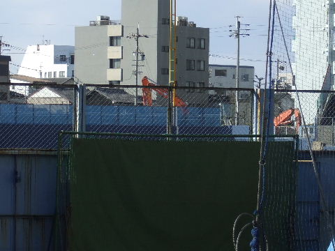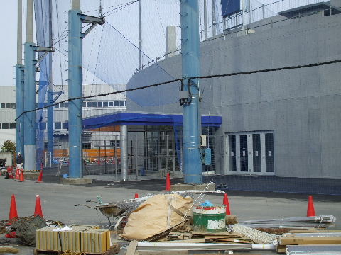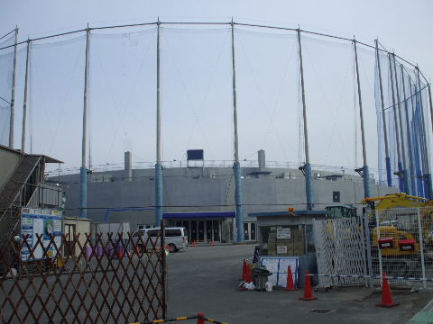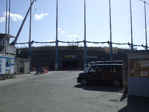 | 2009年12月19日。内野側の防音シートが低くなり 続いて外野側にシートが取り付けられている。 |