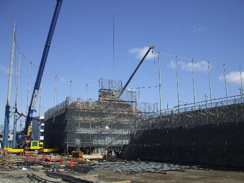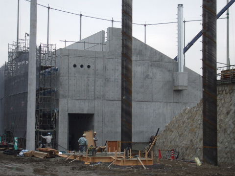 2010年3月13日。コンクリートが固まって型枠や 足場が外され概観が見えてきた。 |