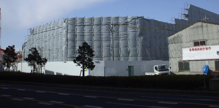 出来ているのが見える。 シネマ棟。 2007年7月28日 北隣にあるこの建物は残り、工事中は一