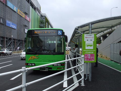 まる。手前に見える緑色のバスは上小田井駅と結ぶシャトルバス。 オープン