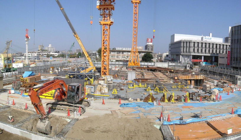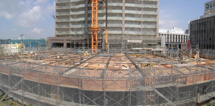 | 2007年10月20日。ビル前の敷地では低層の建物を作っている。 |