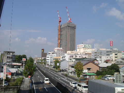 | 2007年10月20日。他にそんなに高い建物がないので 良く目立つ。国道一号線康生通南交差点歩道橋から。 |