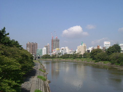2007年10月20日。東岡崎駅近くの乙川に架かる 明代橋から。 |