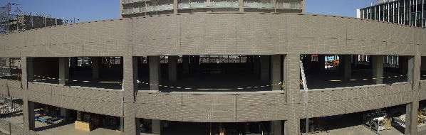 | 2008年1月6日。クレーンもなくなり、後は内装やビル周りの整備。 少し離れた所から見ればもう完成しているようにも見える。ビルの 前に作っていたのは駐車場のようだ。 |