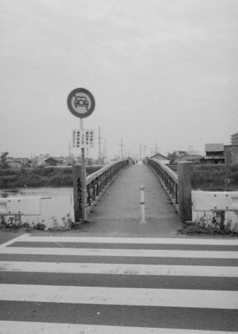 1979年 以前の榎光橋はこんな木製の二輪車までしか通れない橋であった。今は4車線の立派な橋になった。