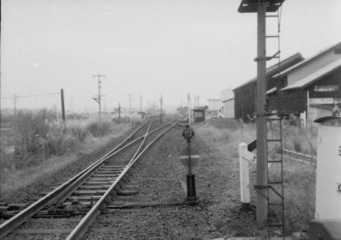 ? 1979年 国鉄八田駅の西のはずれにあった踏切から見る。今は高架化が完成しこの線路の跡は道路になる予定。