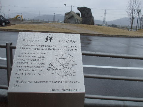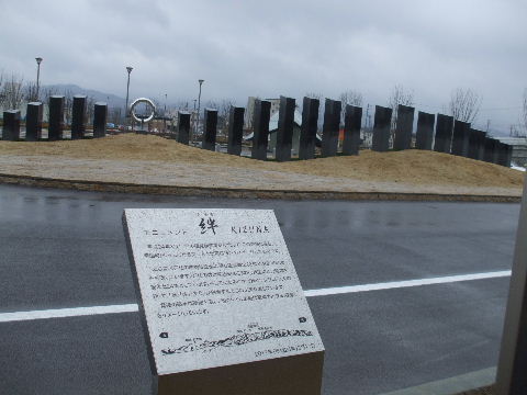 | 2012年3月17日。東口駅前広場のモニュメント。名前は今はやりの「絆」