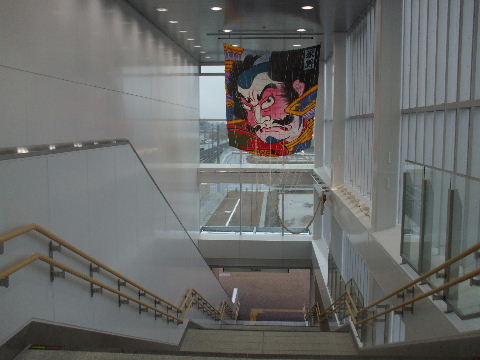 2012年3月17日。東西どちらも階段と一列エスカレーター、エレベーター各一基。幸田といえば凧?