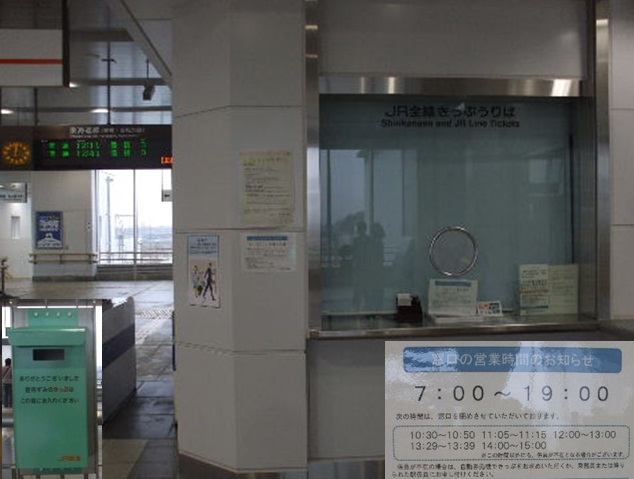 | 2012年3月17日。出札口は閉まる時間があり、改札内には左のような切符回収箱が設置してある。