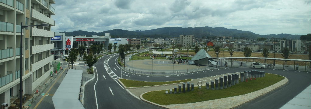 には結構建ち並んできている。左、駅前、塀で囲ってある所には14階建マンション建設予定。車が結構入ってきているが半分以