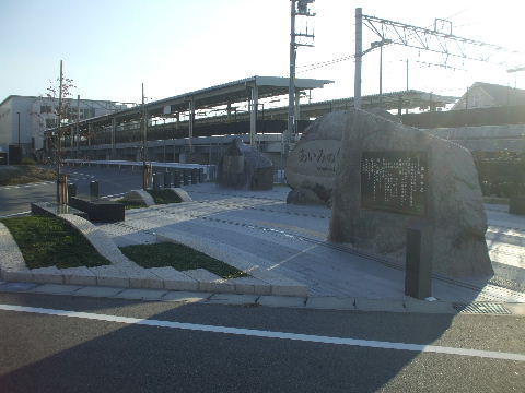 2015年11月5日。駅の北の線路脇に土地区画整理の記念碑が出来