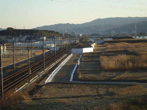 | 2013年2月3日。もう少し線路に近い位置から見る。こっちの方向だけ見ていると結構町っぽくなってき