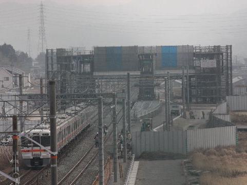 2011年2月5日。橋上部分の屋根まで鉄骨が組まれている。副本線分岐部の工事が行われるようだ。