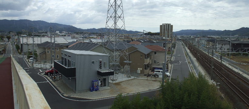 2012年5月31日。西口を陸橋から見る。駅が開業した時は一軒も なかったが建売住宅が数軒建設中。右