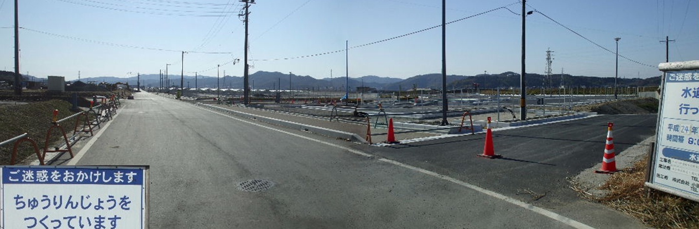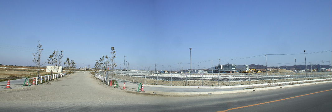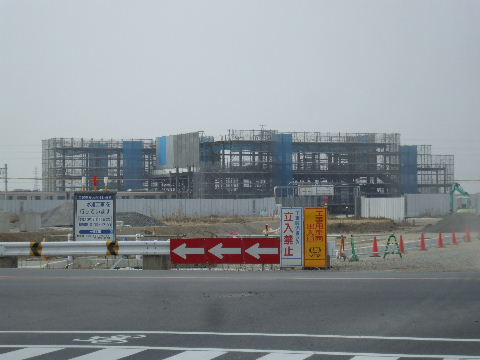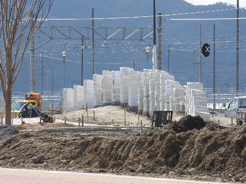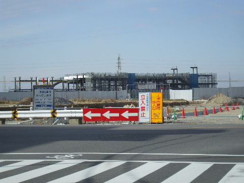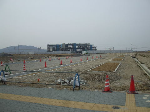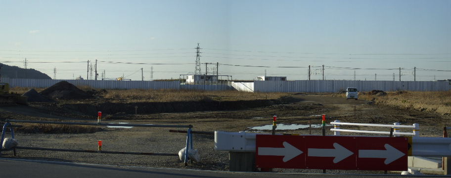 | 2011年1月3日。南西から見る。道路は取り敢えず作業用車出入の必要部分だけの舗装。下水工事が終わっ