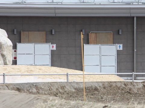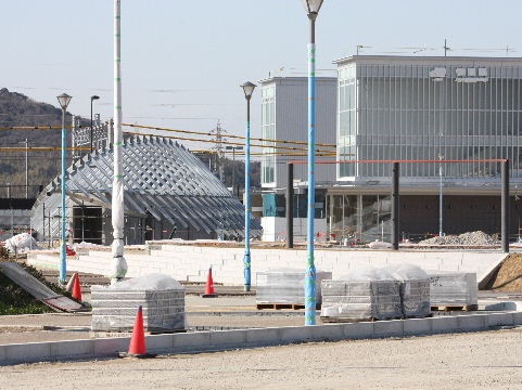 | 2011年12月31日。駅前広場にクジラの骨を載っけたようなトイレ建設中。