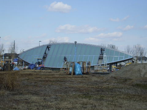 | 2012年3月10日。線路沿い南から見る。ほぼ出来上がり。