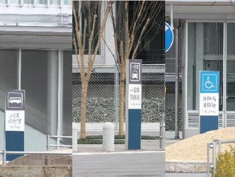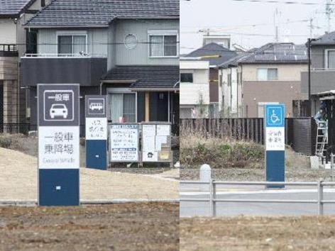 車場でどちらもかなりの広さ。なぜかひらがなの工事看板。
