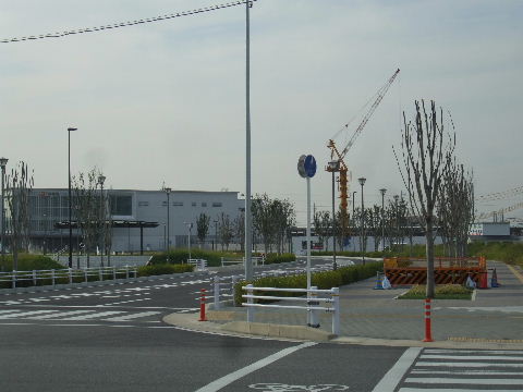 2010年11月13日。駅への進入路入口交差点からも立ち上がり始めた駅建物が見える。
