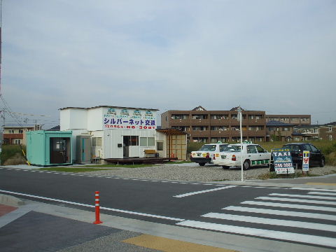 2012年10月8日。西口南西離れた所から見る。今日は休日だが手前の駐車場には30台ほど置いてある。ぽつ