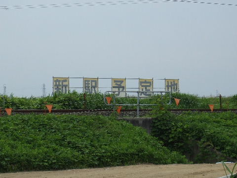 | 2009年4月26日。線路西(下り進行方向左)側に「新駅予定地」の看板が立てられている。西側には殆ど人が