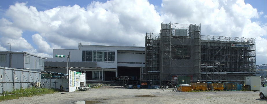 | 2011年7月2日。駅舎は壁の工事が始まったか鉄骨の隙間が